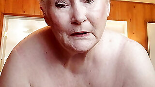 Nasty Grannie Showing Off Her Fat Pussy As She Kneads It With A Dildo
