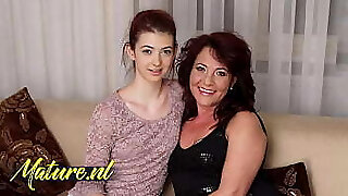 Mature French mom gets doggy-style and cumshot from a horny college girl neighbor