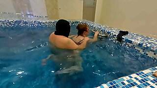 Fucking The Married Neighbors Culo In The Pool While The Cuckold Works