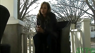 Suzie Stripped To The Waist Smoking Outside