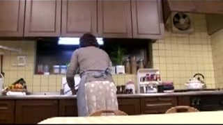 Mi Hermosa Madrastra Limpiando la Cocina Aproveche para Verle su Enorme Caboose y hacerle Trampa para Agarrarla por el Butt