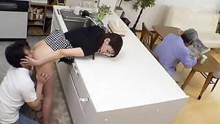 Japanese couple talk to Creampie Penetrate the wife while husband have to watch