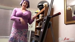 OldNanny Chubby busty grandma masturbate with strapon and tee