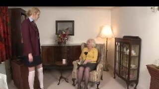 Dominatrix Granny Spanks Girl over her Knee