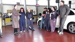 Gang bang of a fleshy mature with anal and oral sex