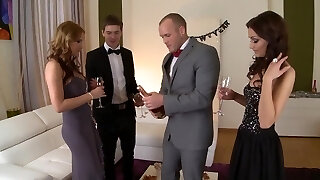 Virgin stud Peter slips his cock in foster moms Gia and Havanas Cougar pussies