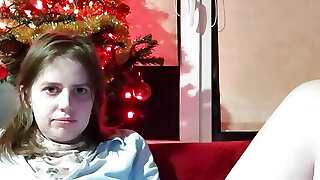 half naked near the Christmas tree girls