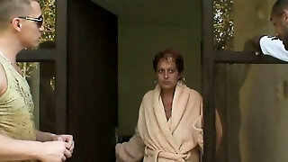 Two big-cocked guys share hot granny neighbor